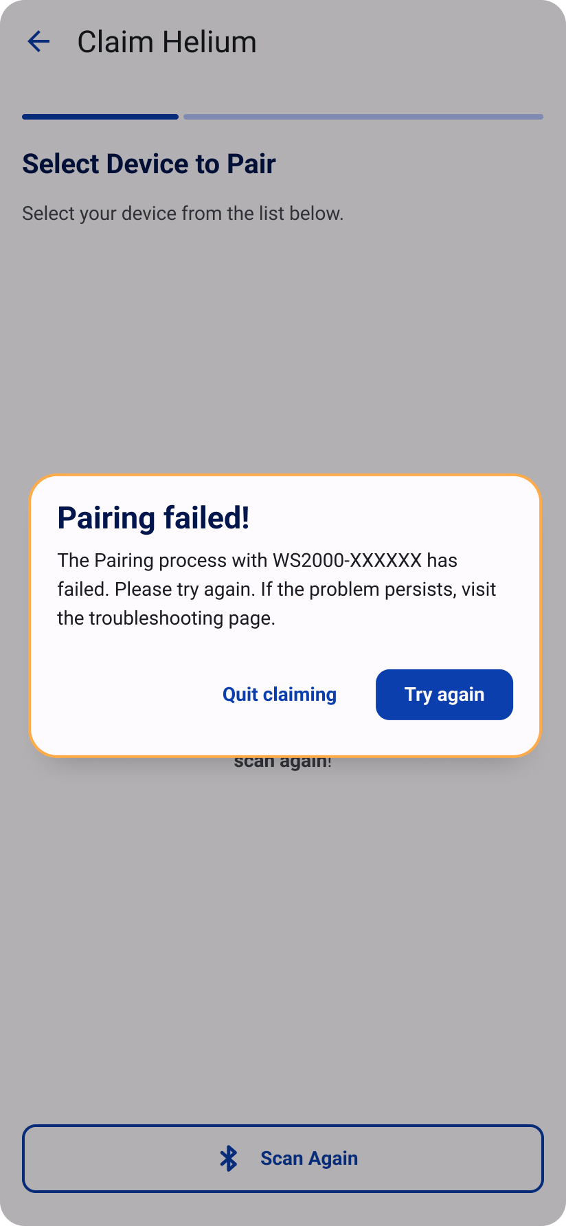 If the claiming process is repeated more than twice without completion, attempt to unpair your weather station and start over. If you encounter connection problems during the claiming, make sure that you are near to the weather station at all times. The solution to the above is to visit the Bluetooth settings of the mobile phone, find the station in the paired devices and "forget the device". This flow is different on Android and iOS.